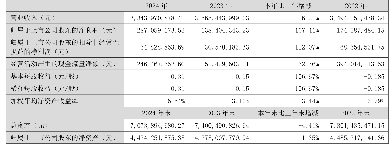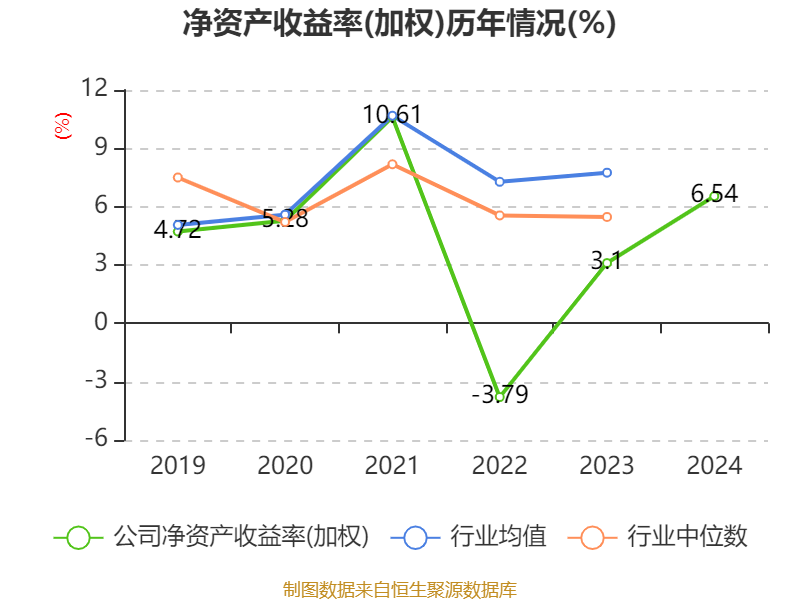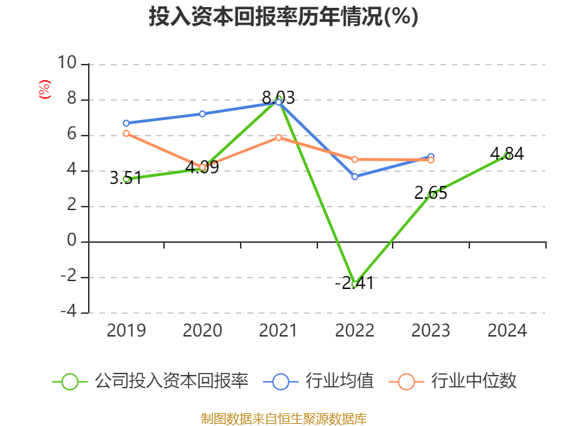 数据显示,2024年公司加权平均净资产收益率为6.54%,较上年同期上升3.44个百分点。公司2024年投入资本回报率为4.84%,较上年同期上升2.19个百分点。