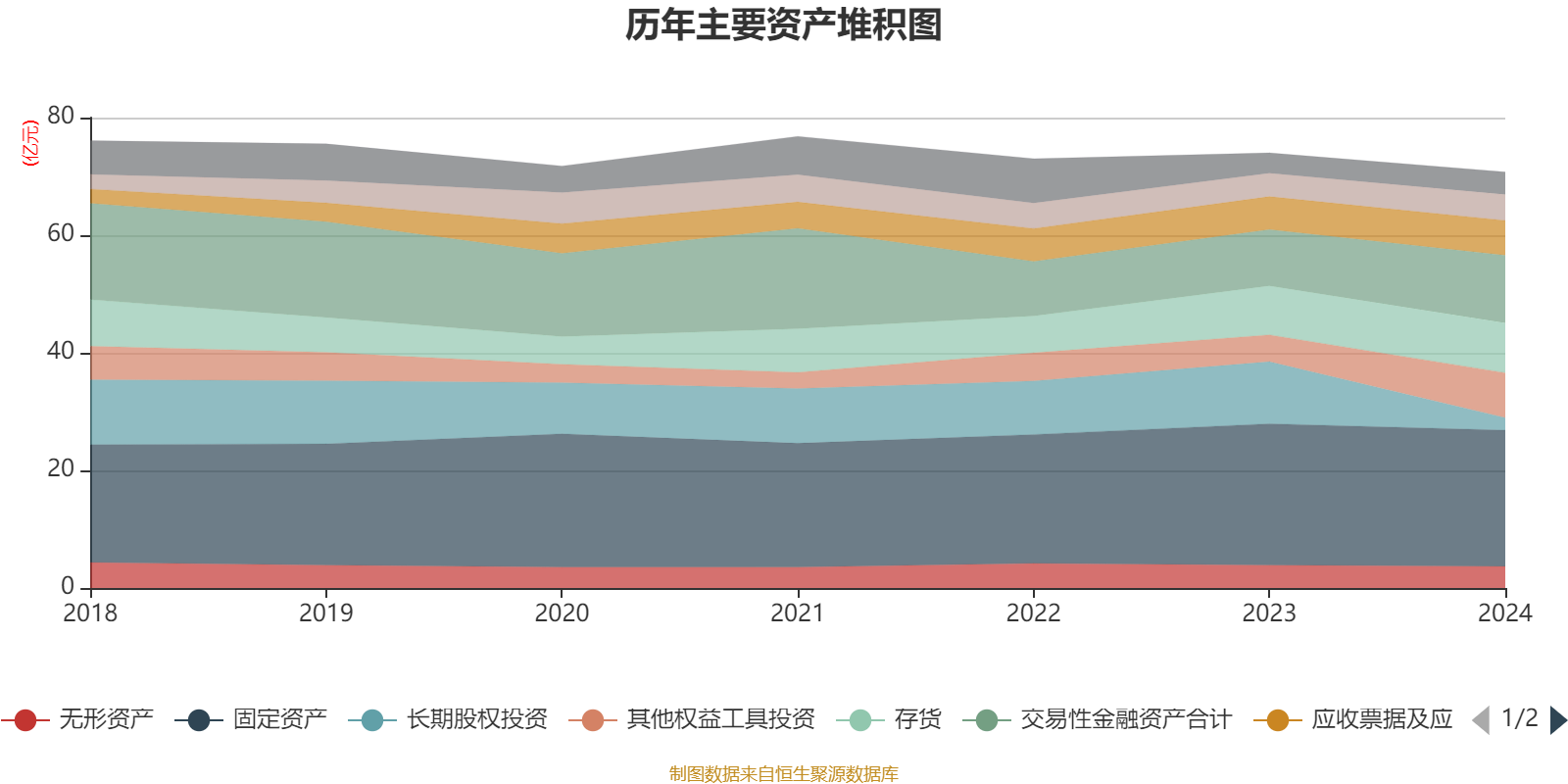 资产重大变化方面,截至2024年末,公司长期股权投资较上年末减少79.72%,占公司总资产比重下降11.24个百分点;其他权益工具投资较上年末增加67.12%,占公司总资产比重上升4.62个百分点;交易性金融资产合计较上年末增加19.9%,占公司总资产比重上升3.29个百分点;货币资金较上年末增加11.33%,占公司总资产比重上升0.88个百分点。